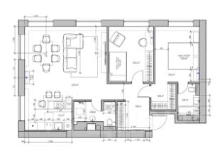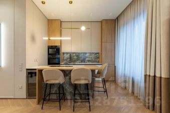 Планировочное решение помещений: просторная кухня-гостиная с встроенной кухонной мебелью, мастер-спальня и комната свободного назначения, которая позволит новому собственнику квартиры оборудовать кабинет, детскую или еще одну спальню, два санузла.