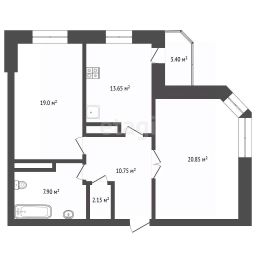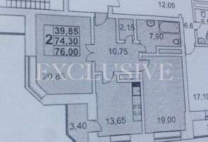 Арт. 133228745 Продается большая, светлая и уютная двухкомнатная квартира. Общая площадь составляет 76 кв. м, из которых 40 (20,85 + 19) кв. м — жилая, а кухня — 13,65 кв. м. Квартира находится на 7 этаже 15-этажного кирпично-монолитного дома, построенного в 2012 году. Потолки высотой 3,0м.