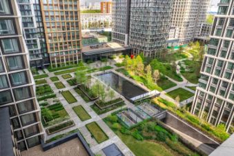 — Закрытая территория с ландшафтным парком, фонтанами, игровыми и lounge-зонами