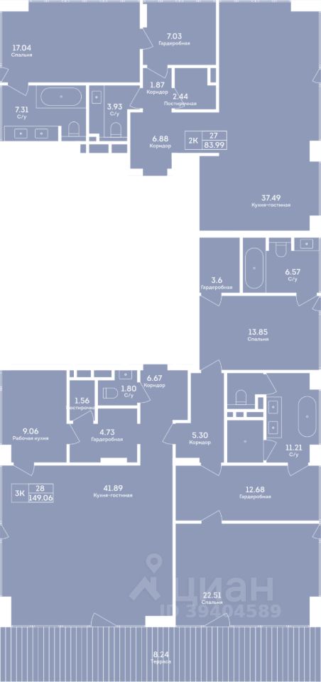 В квартирах предусмотрены панорамное остекление в пол, мастер-спальни и продуманная планировочная логика. Квартиры в корпусах 1 и 3 предлагаются с полной дизайнерской отделкой. Также возможно объединение квартир. В данном корпусе предусмотрены сервисный лифт и сервисный вход для персонала.