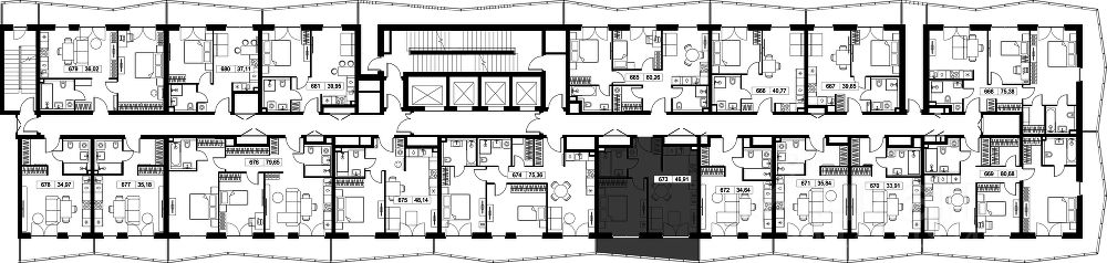 Продаётся 1-комнатная квартира общей площадью 46.91 м² без отделки в ЖК "Селигер Сити" на 28-м этаже башни Лисицкого.