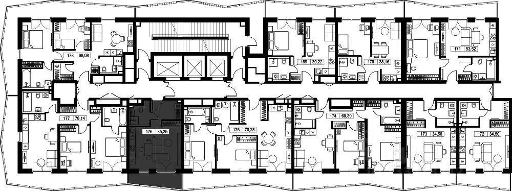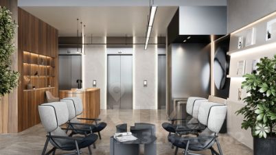 - Лобби по индивидуальному дизайн проекту от европейского бюро Вlank Architects: лаунж-зоны, ресепшен, колясочная, помещение для мытья лап животным после прогулки