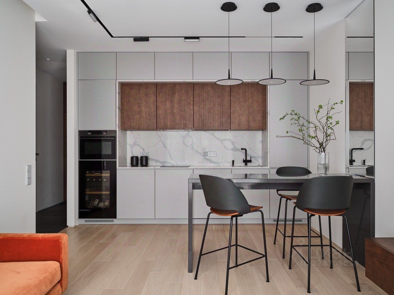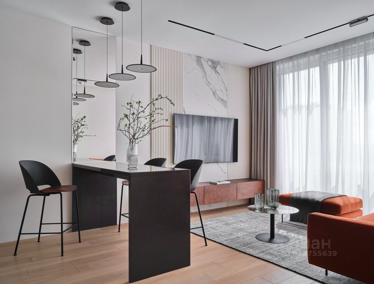 Квартира поражает своим стильным дизайнерским ремонтом, просторной кухней-гостинной и продуманным пространством. Совмещённый санузел выполнен в современном стиле, гармонично дополняя общий интерьер.