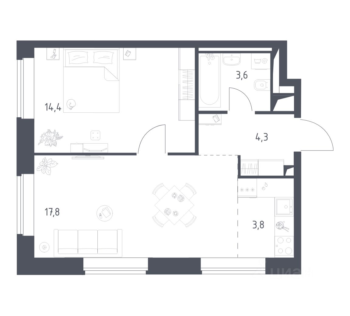 Строим кварталы для жизни с заботой о будущем. Предлагаются 1-комнатные апартаменты бизнес-класса площадью 43,91 кв.м в корпусе 3.1 на 9-м этаже, в жилом комплексе "Верейская 41".