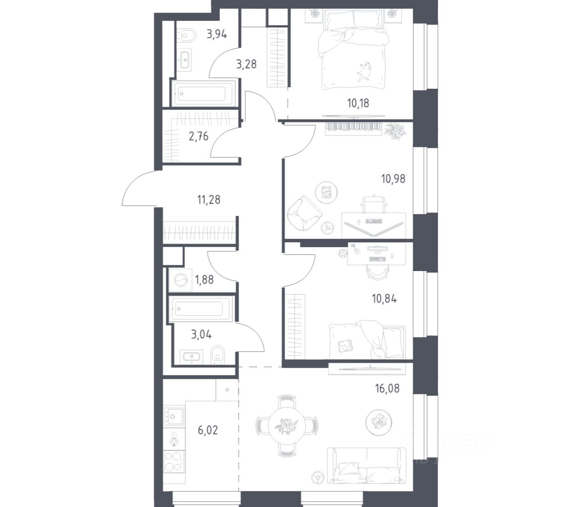 Строим кварталы для жизни с заботой о будущем. Предлагаются 3-комнатные апартаменты бизнес-класса площадью 80,28 кв.м в корпусе 2.1 на 9-м этаже, в жилом комплексе "Верейская 41".