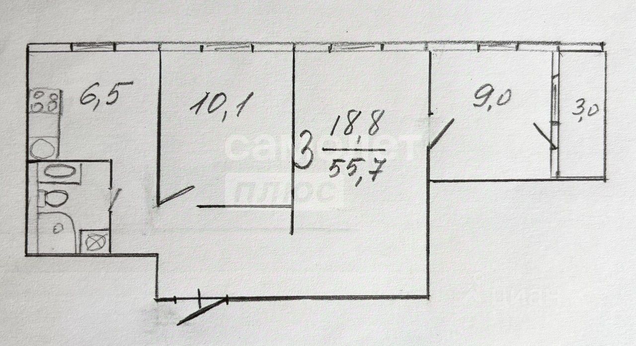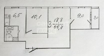 Объект расположен на 8-м этаже 9-этажного панельного дома. Общая площадь квартиры составляет 55,7 м², из которых почти 38 м² - жилая площадь и 6,5 м² — кухня. Комнаты смежно-изолированные: спальня и детская изолированы, гостиная - проходная. Просторная прихожая. Планировка включает совмещенный санузел; окна выходят на улицу, а потолки высотой 2,6 м добавляют пространству легкости. Благодаря качественно выполненному ремонту, квартира полностью готова к заселению и не требует дополнительных вложений. Мебель в квартире останется новым хозяевам (перечень обсуждается с собственником в индивидуальном порядке).