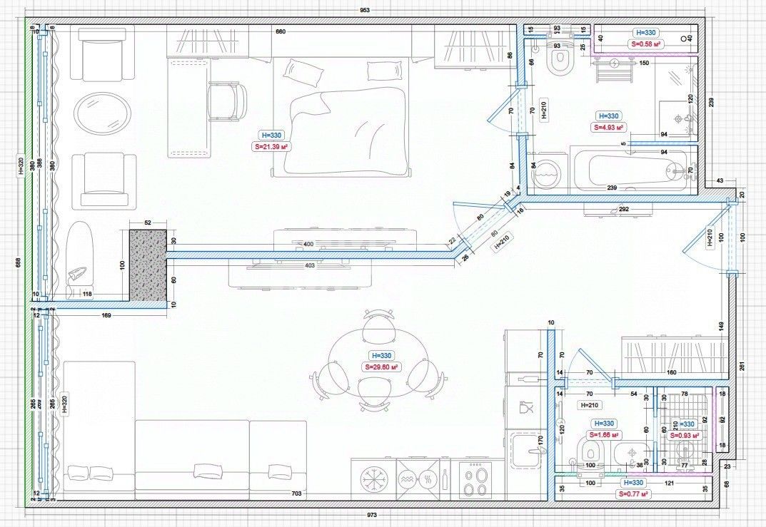 Планировка квартиры (профессионально рассчитано все до мелочей): прихожая с большим вместительным шкафом, гостевой санузел с душевой кабиной, кухня-гостиная, мастер-спальня с большим встроенным шкафом, кроватью трансформером и рабочим местом. В квартире выполнен дорогостоящий ремонт с использованием качественных материалов. Установлена система умный дом. Квартира укомплектована всей новой европейской техникой. Вся мебель делалась по индивидуальным размерам на заказ и имеет большое количество мест для хранения.