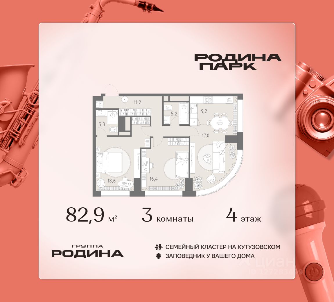 В жилом кластере Родина Парк рядом с природным заказником Долина реки Сетунь продаётся 3-комнатная квартира.