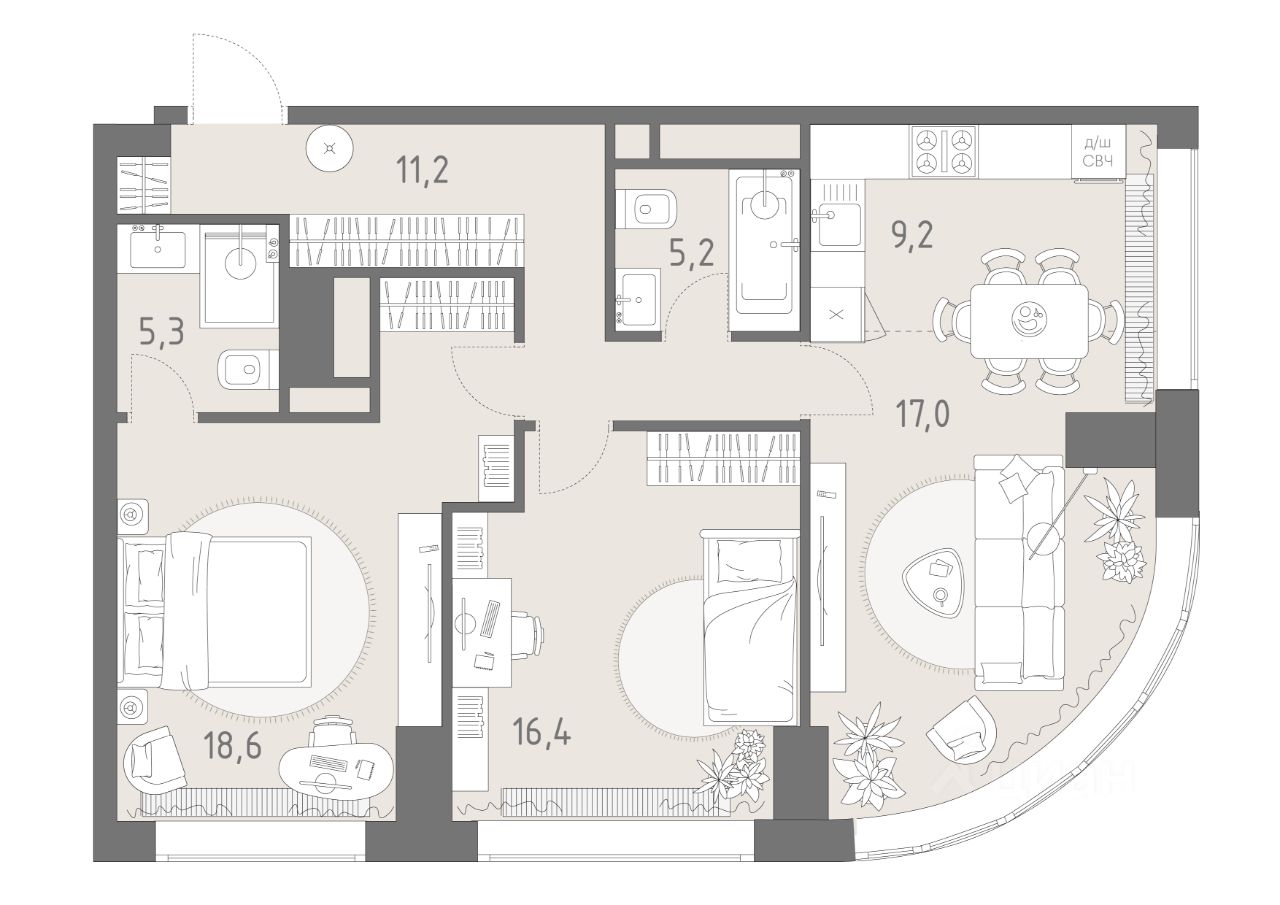 Продуманная европланировка, которую легко зонировать под ваши запросы. Потолки от 3,1 м.