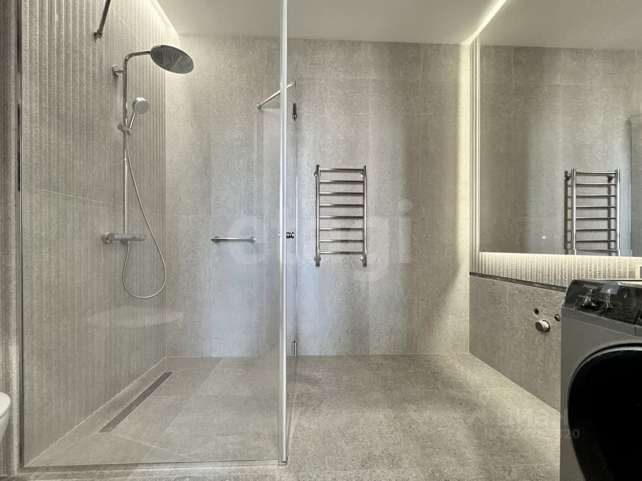 Планировка квартиры продумана до мелочей: просторная кухня площадью 24 м², уютная спальня 11 м², гардеробная 9 м² с окном и современный совмещенный санузел 6,3 м². Внутреннее оформление выполнено с любовью и вниманием к деталям: качественная отделка, вся мебель изготовлена на заказ, что придаёт помещению индивидуальность и стиль. В спальне вас встретит теплый паркет Finex премиум, а в остальных зонах — керамогранит с электрическим подогревом, который создаст атмосферу уюта даже в холодные дни. Кровать из Италии с нубуковым покрытием, плитка в ванной от Парселрноза Prada, входная дверь с системой "умный дом" и стеклянные розетки и выключатели европейского качества — все это делает квартиру поистине уникальной.