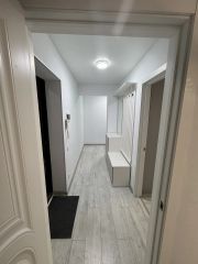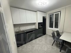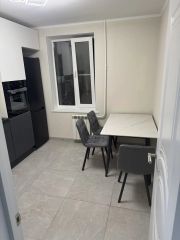 Внутри выполнен современный ремонт в светлых тонах. В квартире остается мебель, новый кухонный гарнитур и встроенная новая бытовая техника (холодильник, варочная панель, духовой шкаф, стиральная машина, посудомоечная машина).