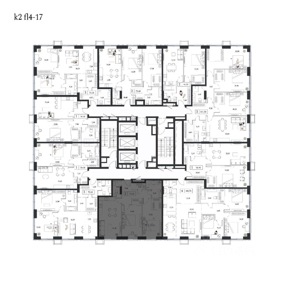 Общая площадь: 73.6 кв.м. Высота потолков от 3.15 м.