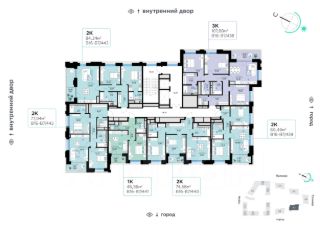 В продаже — двухкомнатная квартира, общей площадью 74,58 кв. м. Квартира расположена на четвертом этаже десятиэтажного корпуса Балансд в квартале В16 нового района СберСити, который строит Сбер.