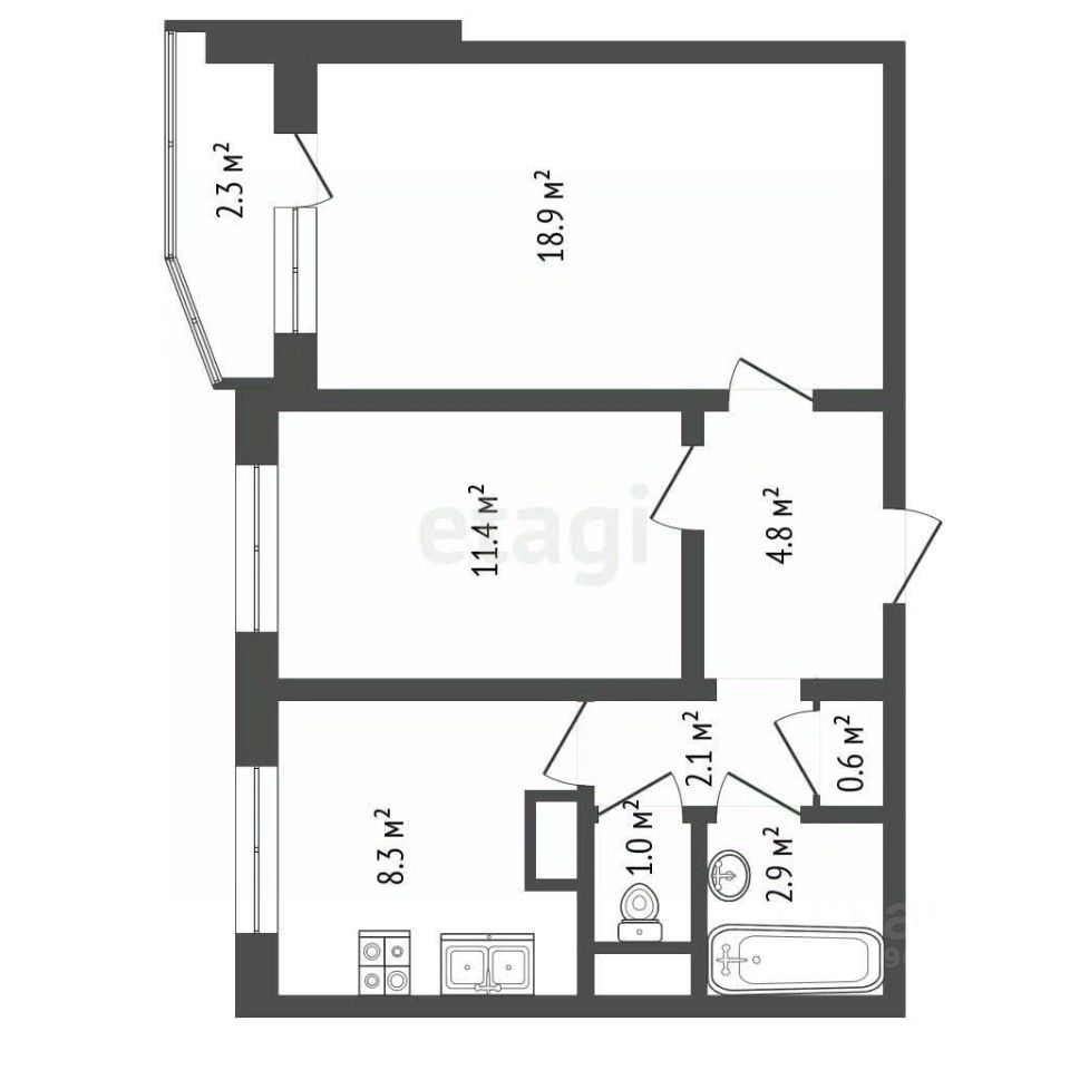 Просторная двухкомнатная квартира 50,2 м² с двумя отдельными комнатами. Светлая, солнечная сторона.