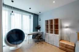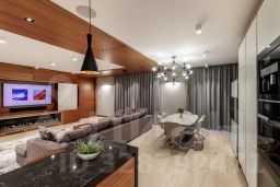 Общая гостиная 60 м2, мастер-спальня с двумя гардеробными и своим санузлом, отдельный кабинет и ещё три спальни. Потолки 3,1 м. Окна на три стороны — солнце с утра до вечера. Окна - дубовые с триплексом внутри и коленным стеклом снаружи - для тишины и безопасности. Вы не столкнётесь локтями, но всегда будете рядом.