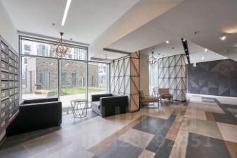 -лобби входной группы с камином и удобными зонами для приема посетителей.