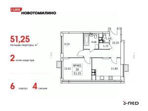 Продается 2-комнатная квартира общей площадью 51,25 кв.м. на 14 этаже 17-этажного дома. Квартира расположена в стильном жилом комплексе "Новотомилино" от застройщика 3-RED. Удобная и практичная планировка дарит максимально широкие возможности для создания интерьера и позволит рационально использовать каждый сантиметр.