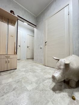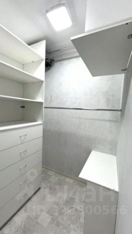 Есть вместительная гардеробная с зеркальными дверьми-купэ в потолок.