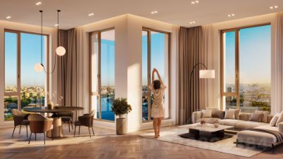 Современный премиум-квартал ЭРА на Дербеневской набережной, формирующий новый архитектурный облик Даниловского района Москвы. Жилой комплекс из шести высотных корпусов выполнен в актуальной интерпретации стиля ар-деко, где ритмичные линии фасадов, натуральный мрамор и изысканные орнаменты создают гармоничный и запоминающийся образ.