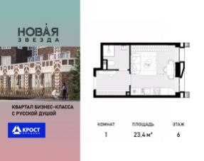 Продаётся 1-к квартира 23.4 кв.м. на 6-м этаже 21 этажного дома, корпус 1 - Резиденция "Вологда". Без отделки.