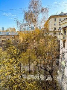Дом внутри квартала, без прямого потока под окнами. Тихо. Птицы поют. Берёзы растут.