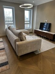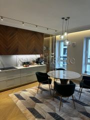 Ремонт выполнен с нуля, очень качественный, делали для себя с использованием дорогих материалов. Продумали систему хранения, освещения, заменили все коммуникации, отопление. Высота потолков 3,15