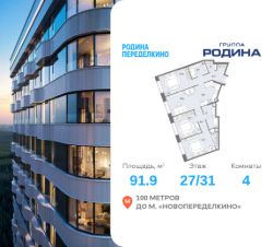 Продаётся 4-комнатная квартира площадью 91.9 м² на 27 этаже в Жилом Комплексе "Родина Переделкино".