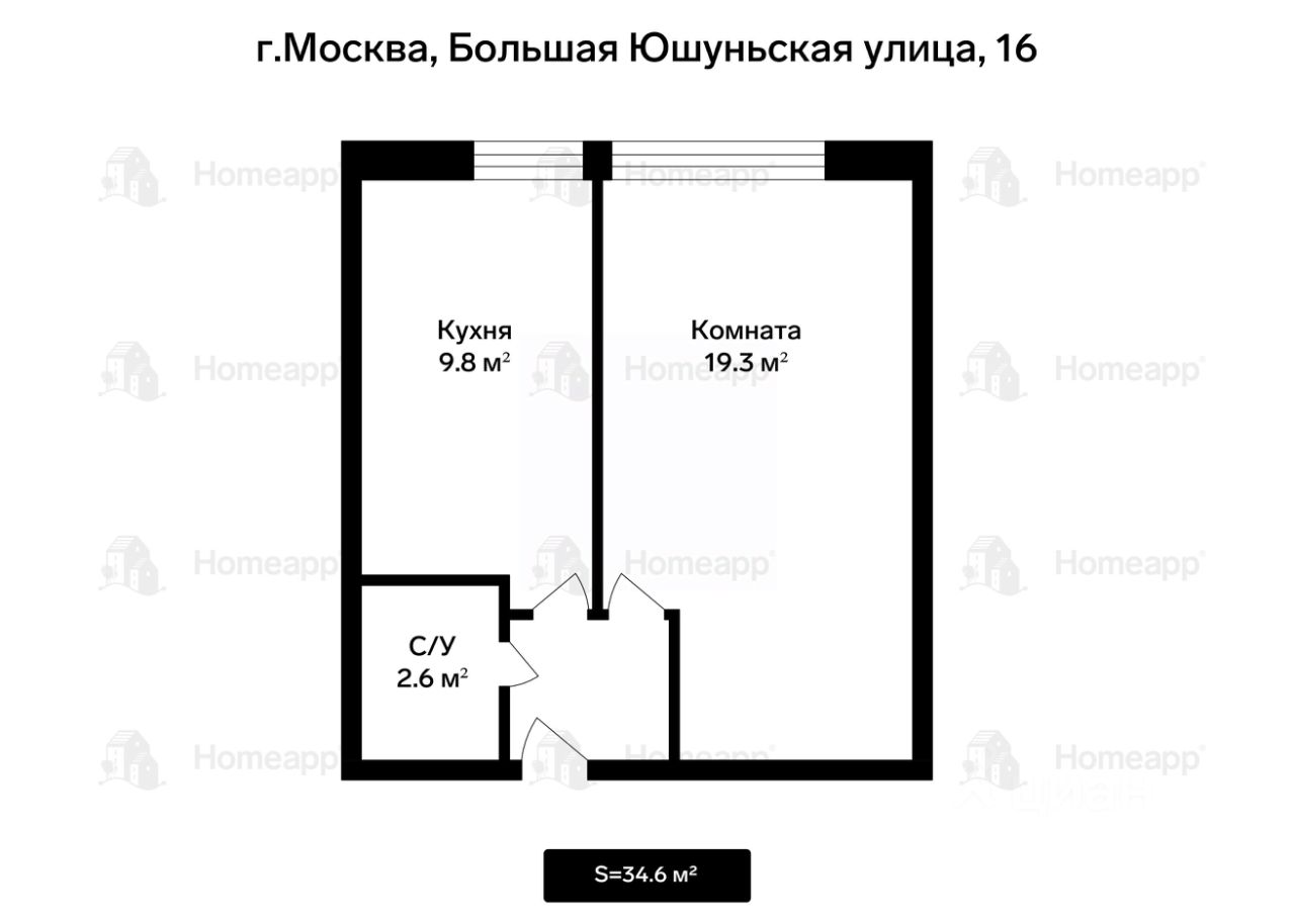 - Общая площадь - 35 м², жилая - 19.3 расположена на 6 этаже 12-этажного дома.