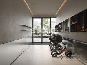Во всех входных группах предусмотрены помещения для временного хранения СИМ, лапомойки, гостевые санузлы, а также комнаты матери и ребенка. На каждом этаже появятся колясочные для дополнительного удобства семей с маленькими детьми.