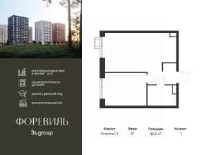 Предчистовая отделка в подарок! Пешая доступность от метро и московская прописка! Продается уютная 1-комн. квартира площадью 39,2 кв.м на 17 этаже 17 этажного жилого комплекса бизнес-класса Foreville от 3S Group.