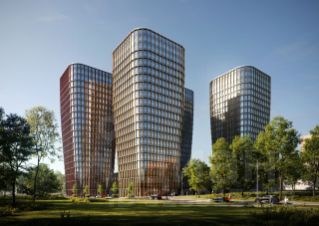 Стилистика здания - современная с запоминающимися индивидуальными архитектурными элементами. В отделке фасада используются высококачественные современные материалы: клинкерный кирпич, металл, витражное остекление, частичная облицовка цоколя гранитом - что придает дому индивидуальный образ, органично вписанного в окружающую среду.