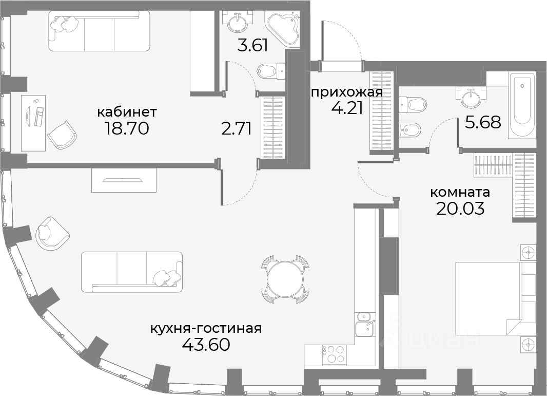 На первом-третьем этажах здания расположены коммерческие помещения и входная группа для жителей. Наружная стена входного вестибюля из витражного остекления. В вечернее время предусматривается архитектурная подсветка фасадов здания.