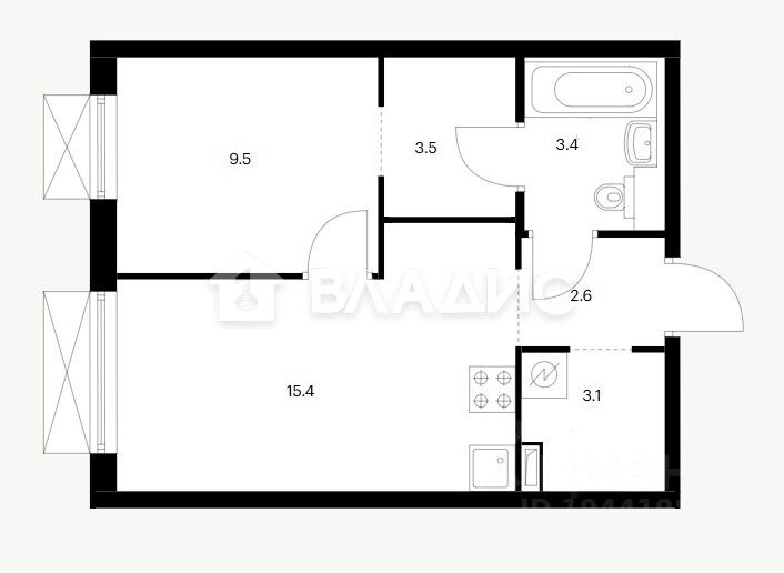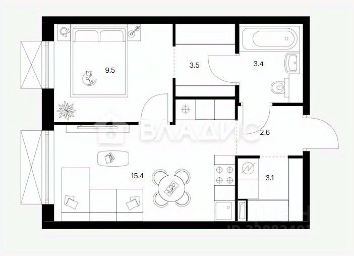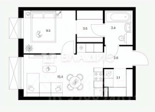 Квартира с Готовой улучшенной отделкой и функциональной планировкой: Комната - 9,5 кв.м Просторная кухня - гостиная - 15,4 кв.м. Совмещенный санузел.