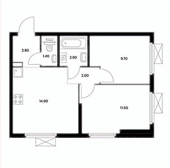 Лот 49074910. Предлагаем уютную свежесданную (ключи получены в феврале) двухкомнатную квартиру (практически "евротрешку") в одной из самых высоких и технологичных новостроек Москвы жилом комплексе "Амурский парк". Общая площадь 45,2 м2 распределена с максимальной пользой: две изолированные комнаты (9.7 и 11.5 м2), что обеспечивает приватность для всех членов семьи, и объединенная кухня-гостиная площадью 14,9 м2.