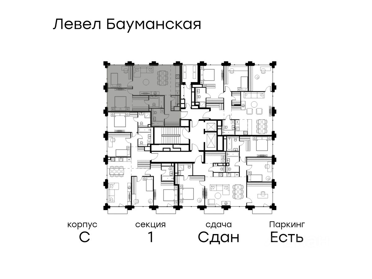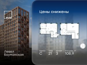 В Басманном районе (ЦАО) продается 3-комнатная квартира площадью 108.90 кв.м без отделки. Квартира расположена на 21 этаже 21-этажного корпуса " C" в жилом комплексе бизнес-класса Левел Бауманская (компания Level Group).