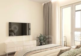 Квартира находится на 5 этаже, имеет интересную планировку: Общая площадь 49,4 м2+ лоджия 8.0 м2, кухня-гостиная 14.5 кв.м. с выходом на лоджию, комната 20.0 м2 с выходом на лоджию, гардеробная 6.6 м2, совмещенный санузел 4.3 м2 и просторная прихожая 8 м2.