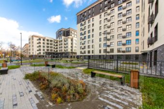 Двор закрытый без машин с видеонаблюдением, детской площадкой с горкой, качелями и скамейками. В каждой секции дома есть место консьержа.