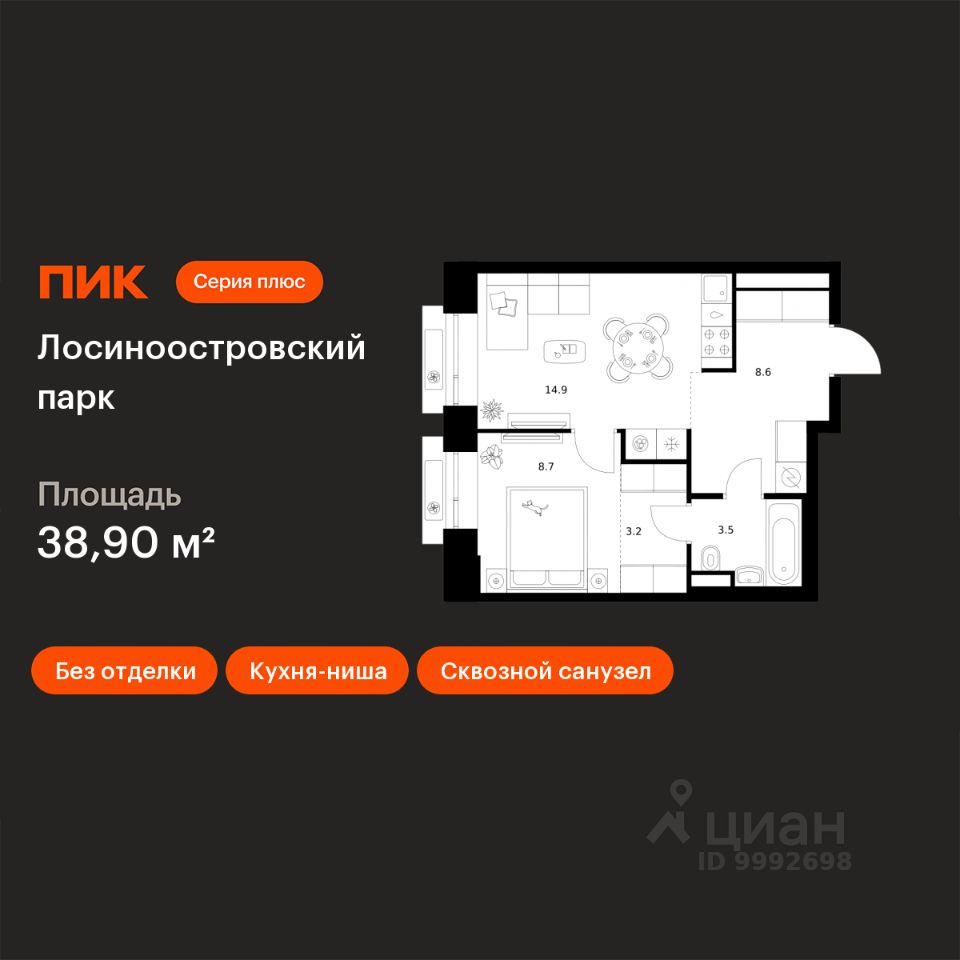 Продаётся 1-комн. квартира площадью 38,9 кв.м на 13 этаже 14 этажного дома (Корпус 2.3, Секция 1) проекта ПИК Лосиноостровский парк. Светлый просторный подъезд на уровне земли, функциональная планировка, большие окна, без отделки.