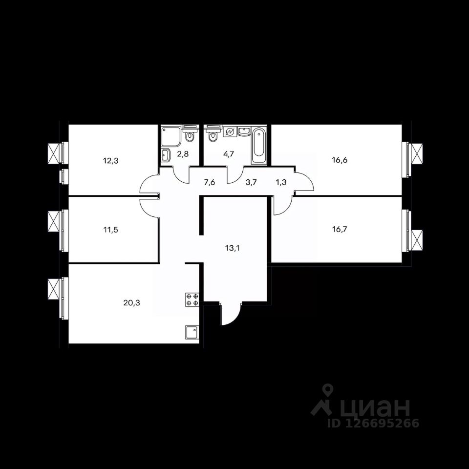 Общая площадь - 109.8 кв.м. Жилая площадь - 70.2 кв.м. Площадь кухни - 20.3 кв.м. Четыре изолированные комнаты. Квартира выполнена в косметическом ремонте, что позволяет вам легко обустроить пространство мебелью без лишних затрат. Два совмещенных санузла обеспечивают удобство для всей семьи. Дом 2020 года постройки, что гарантирует современную планировку. Из окон открывается вид во двор и на улицу, что создает атмосферу комфорта и спокойствия.