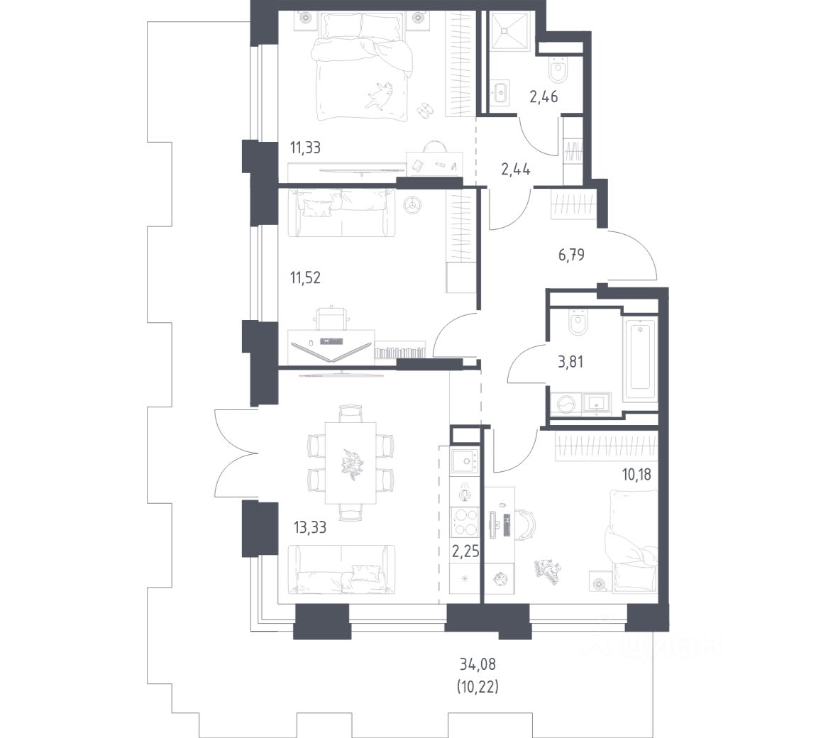 Строим кварталы для жизни с заботой о будущем. Предлагаются 3-комнатные апартаменты бизнес-класса площадью 74,33 кв.м в корпусе 4.1 на 1-м этаже, в жилом комплексе "Верейская 41".