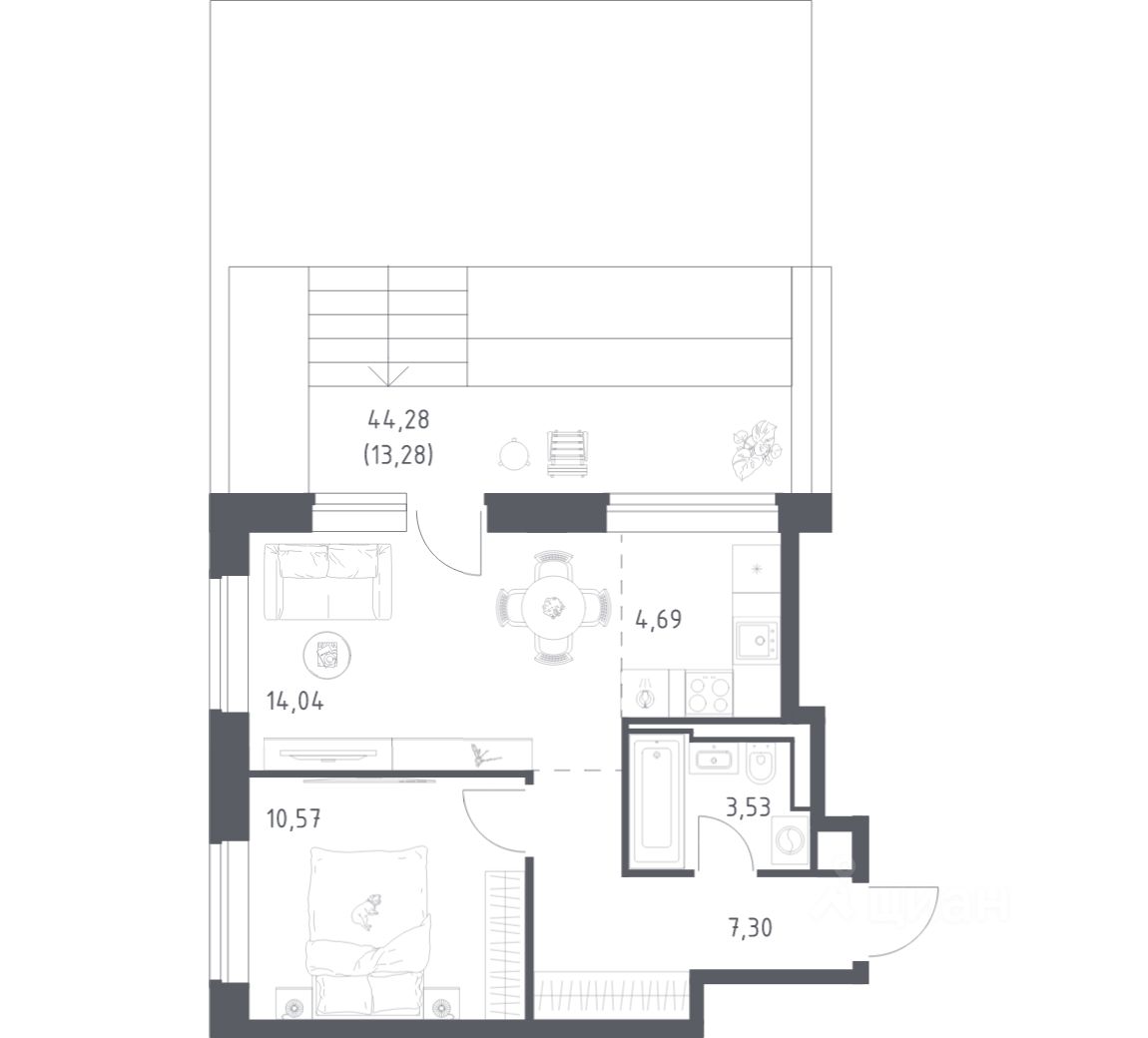 Строим кварталы для жизни с заботой о будущем. Предлагаются 1-комнатные апартаменты бизнес-класса площадью 53,41 кв.м в корпусе 1 на 8-м этаже, в жилом комплексе "Верейская 41".
