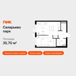 Продаётся 1-комн. квартира площадью 35,7 кв.м на 10 этаже 22 этажного дома (Корпус 57.3, Секция 3) проекта ПИК Саларьево парк. Светлый просторный подъезд на уровне земли, функциональная планировка, большие окна, предчистовая отделка.