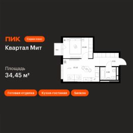 Продаётся 1-комн. квартира площадью 34,45 кв.м на 6 этаже 32 этажного дома (Корпус 3.4, Секция 4) проекта ПИК Квартал Мит. Светлый просторный подъезд на уровне земли, функциональная планировка, большие окна, c отделкой.