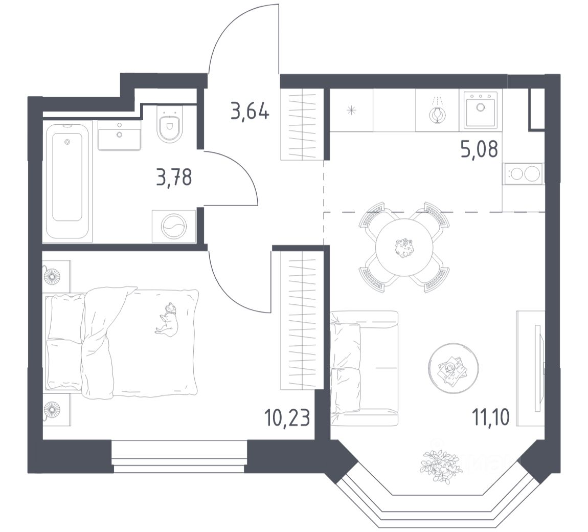Строим кварталы для жизни с заботой о будущем. Предлагается 1-комнатная квартира комфорт-класса площадью 33,83 кв.м в корпусе 2 на 5-м этаже, в жилом комплексе "Квартал Домашний".
