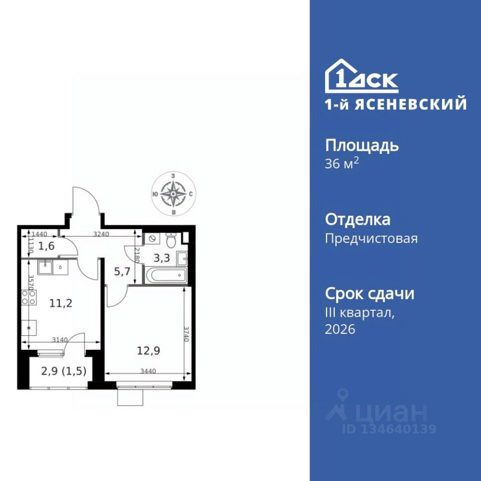 Продаётся 1-к квартира номер 139 общей площадью 36.2 кв.м. на 15-м этаже 16 этажного здания. Предчистовая отделка. Цена с учётом скидки.