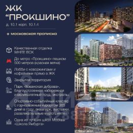 В шаговой доступности находятся магазины, где можно приобрести все необходимое для комфортной жизни. Метро "Прокшино" находится в 500м, что позволяет быстро добраться до разных частей города.