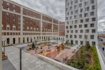 Дом расположен в самом центре комплекса, равноудален от набережной и от парка, имеет закрытый двор, детскую площадку и подземный паркинг.