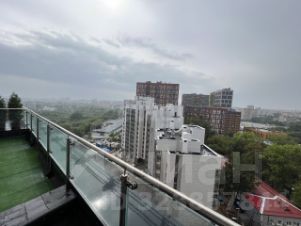 Панорамные окна в пол открывают красивый вид на город и парк.