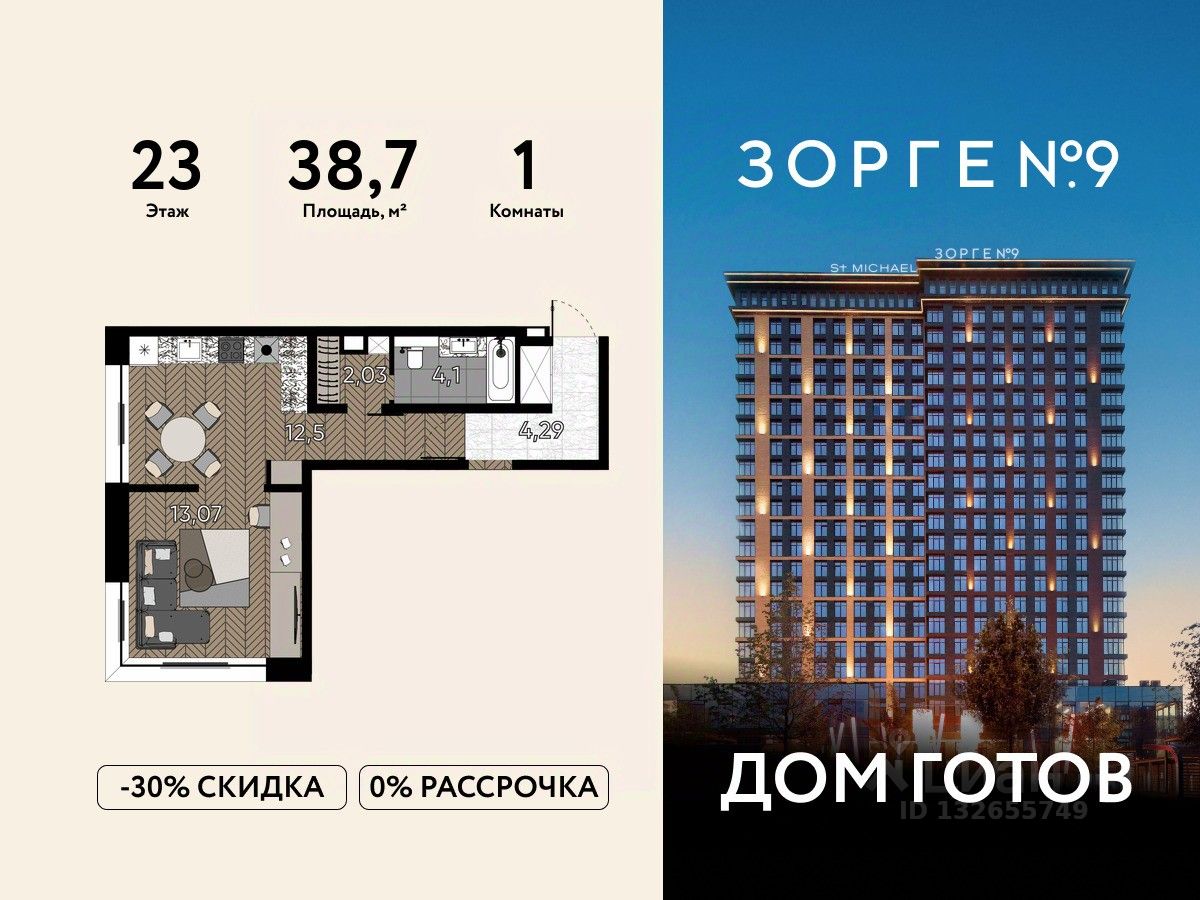 "Зорге 9" — готовые апартаменты бизнес-класса на Ходынке. 10 минут до Москва-Сити. Архитектура: 3 современных корпуса с фасадами в стиле архитектуры Нью-Йорка и с сервисами премиальных отелей, высотой до 23 этажа. Строгие линии, панорамные окна создают ощущение неподдельной роскоши и комфортной жизни в сердце мегаполиса. Проект награжден авторитетной премией European Property Awards. Резиденции: Свободная планировка, небольшая глубина этажа, огромные панорамные окна в пол до 3,6 м и высота потолков до от 3,3 до 4,3 м позволяют реализовать самые смелые концептуальные идеи и создать идеальный интерьер с учетом всех пожеланий. Вдохновляющие виды на город украсят ваш апартамент лучше любой картины. Есть возможность приобретения дизайн-проекта и полной меблировки апартаментов от партнеров девелопера. Расположение: 3 мин. пешком до парка Березовая роща 10 мин. пешком до Ходынского поля 10 мин. до ТЦ Авиапарк 30 минут до Шереметьево 10 мин до Москва-Сити или 1 станция до Москва-Сити 5 минут до ТТК 4 станции метро в шаговой доступности: 6 мин м. Полежаевская (фиолетовая ветка) 7 мин МЦК Зорге (МЦК) 7 мин м. Хорошевская (голубая ветка) 10 мин МЦК Хорошёво (МЦК) Благоустройство: Собственный парк 2 га с амфитеатром и поющими фонтанами. В парке высажено 136 деревьев и более 11 000 кустов и мелких растений из немецких питомников. Площадка для йоги и воркаут-зона со спортивными площадками. Теннисные столы и детский плейхаб Две башни Авторское гранд-лобби В лобби предусмотрена лаундж-зона, чайная с камином, комната для хранения велосипедов и колясок. Доступ по системе FACE ID. В отделке лобби и лифтовых холлов использован декоративный камень итальянского бренда Atlas Concorde Пентхаусы На верхнем уровне комплекса расположены роскошные просторные пентхаусы с высотой потолка до 4,2 метра и панорамными окнами до 3,6 метров, открывающими великолепные виды на столицу. Пентхаусы с выходами на собственные приватные террасы на кровле, площадью от 150 кв. м являются жильем high-уровня, демонстрирующим высокий статус владельца.