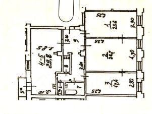 Квартира расположена на 4 этаже. Общая площадь-119,2 кв.м. Три изолированных комнаты площадью 20,6- 26,7-17,7 кв.м, кухня-столовая 30 кв.м. Санузел раздельный. кладовка, балкон. Лифт. Пол -паркет. Окна выходят во двор (кухня) и на улицу ( комнаты).